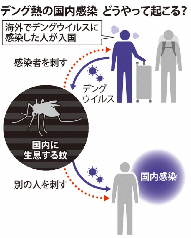 日本では14年と19年に国内感染が確認された。国立感染症研究所によると、20年以降は海外で感染した人が国内で発症する「輸入症例」のみだが、今年は6月30日までに96人の症例が報告され、23年同時期の2・8倍となっている。