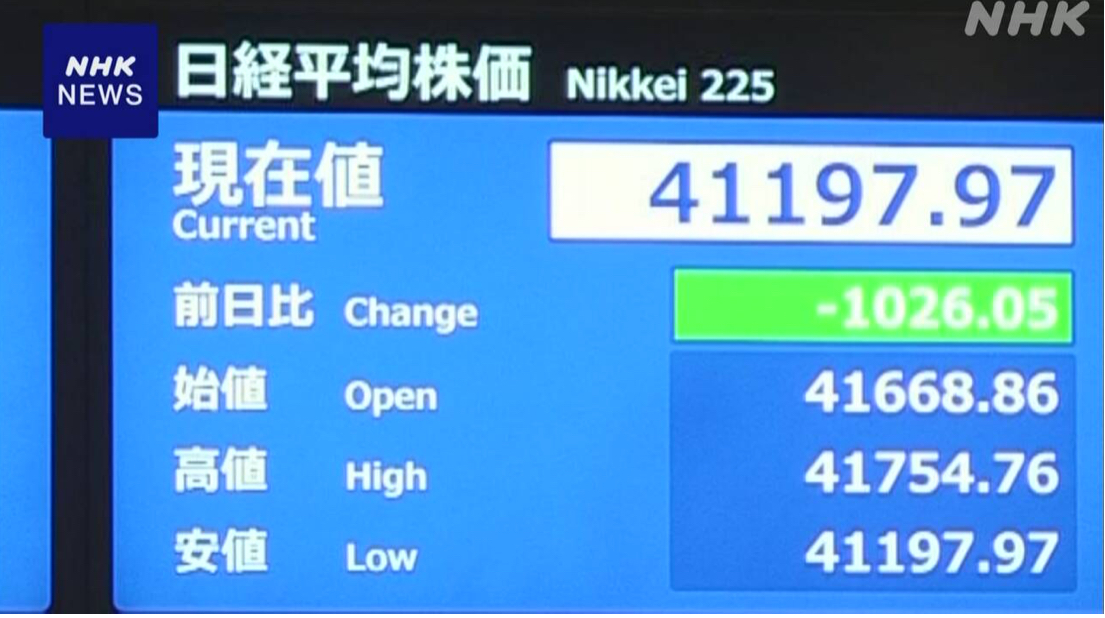 NHK12日の東京株式市場、日経平均株価は1000円以上値下がりしています。