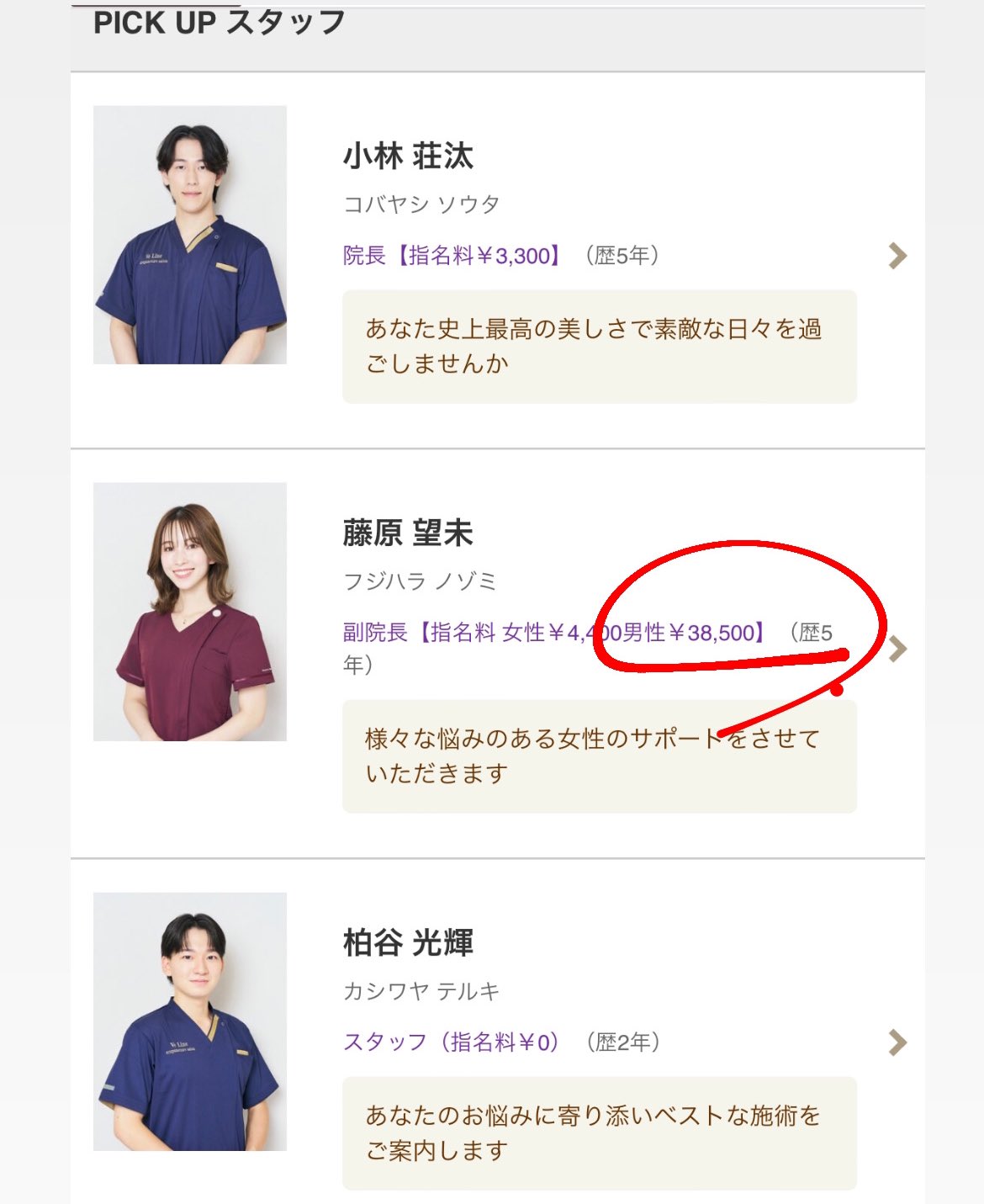 藤原の務める鍼灸院の予約サイトにて、他のスタッフは男女ともに一律料金であることに対し、藤原は女性は4,400円、男性は38,500円の指名料が必要と記載されている箇所のスクリーンショットが拡散され、話題に。