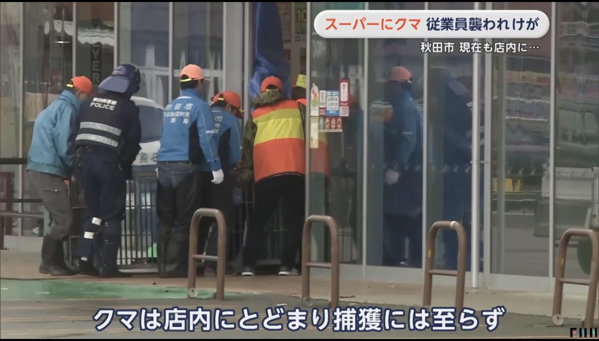 秋田市のスーパーで男性従業員がクマに襲われ、顔などにけがをしました。クマは12月1日午前1時現在も店内にとどまっていて、捕獲には至っていません。
