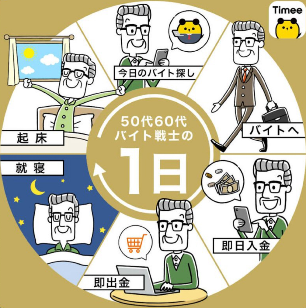 タイミーが提唱する50~60代その日暮らしオジサンがヤバ過ぎると話題