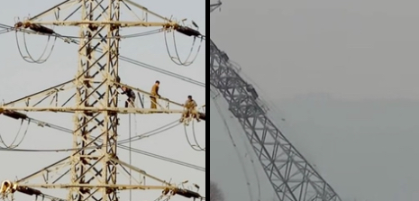 送電塔に登り、作業している人が落下しているとみられる映像も公開しています。