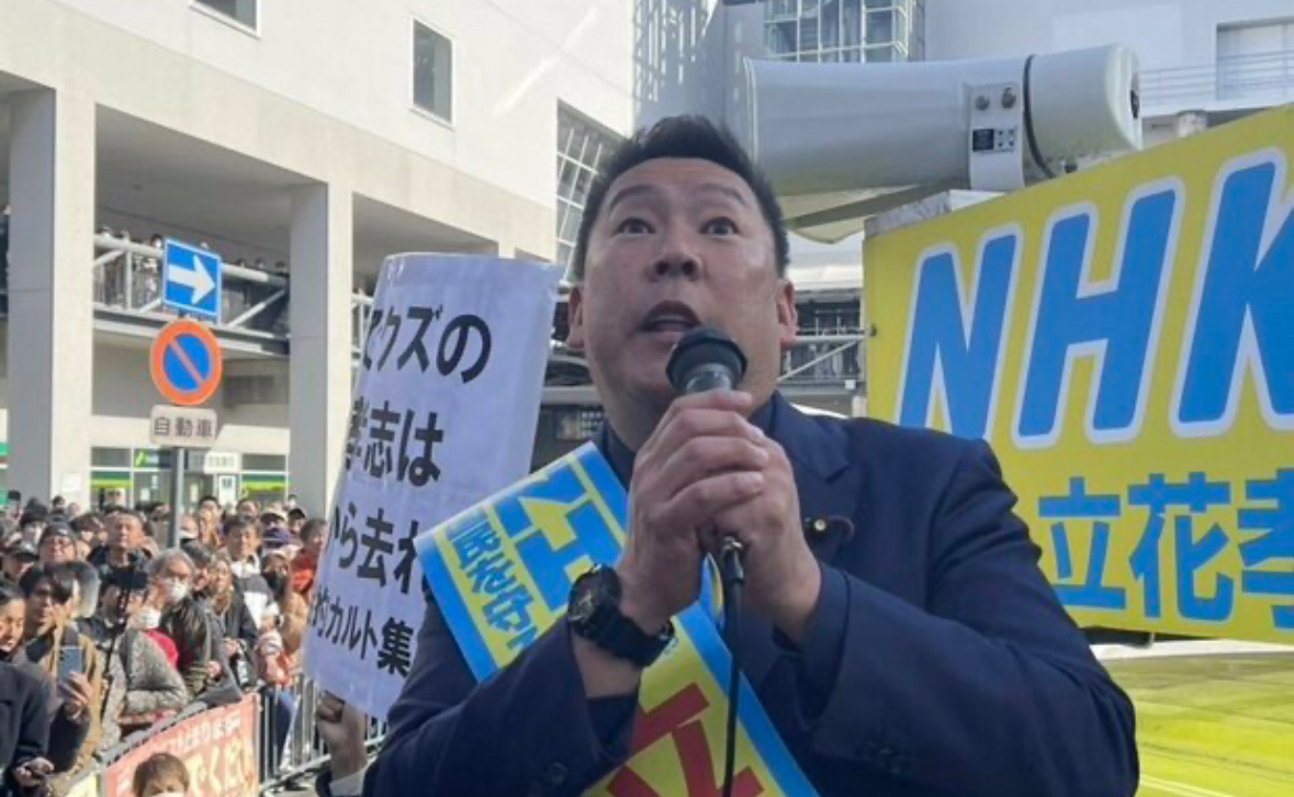 大阪・泉大津市長選(15日投開票)が8日告示され、NHKから国民を守る党の立花孝志党首が泉大津駅前で第一声を行った。兵庫県知事選で斉藤元彦知事の再選をアシストしたことで、注目を集めた立花氏は生まれ故郷の泉大津市長選に電撃出馬。駅前は立錐の余地もない1000人近い聴衆で埋め尽くされた。アンチも集まったことで、小競り合いも起きる中で、立花氏は抗議のプラカードを掲げた男性を壇上に呼び寄せ、マイクを握らせての討論バトルも開催した。