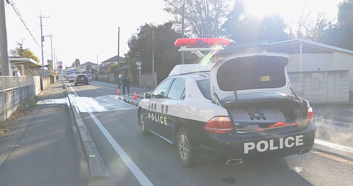 けさ、群馬県伊勢崎市の県道で、馬と乗用車とぶつかる事故がありました。車の運転手は軽傷でしたが、馬は死にました。きょう午前6時ごろ、伊勢崎市平井町の県道で、通りがかった人から「馬と車の交通事故」と110番通報がありました。警察が駆けつけたところ、茶色い馬が1頭、道路上に倒れて死んでいたということです。