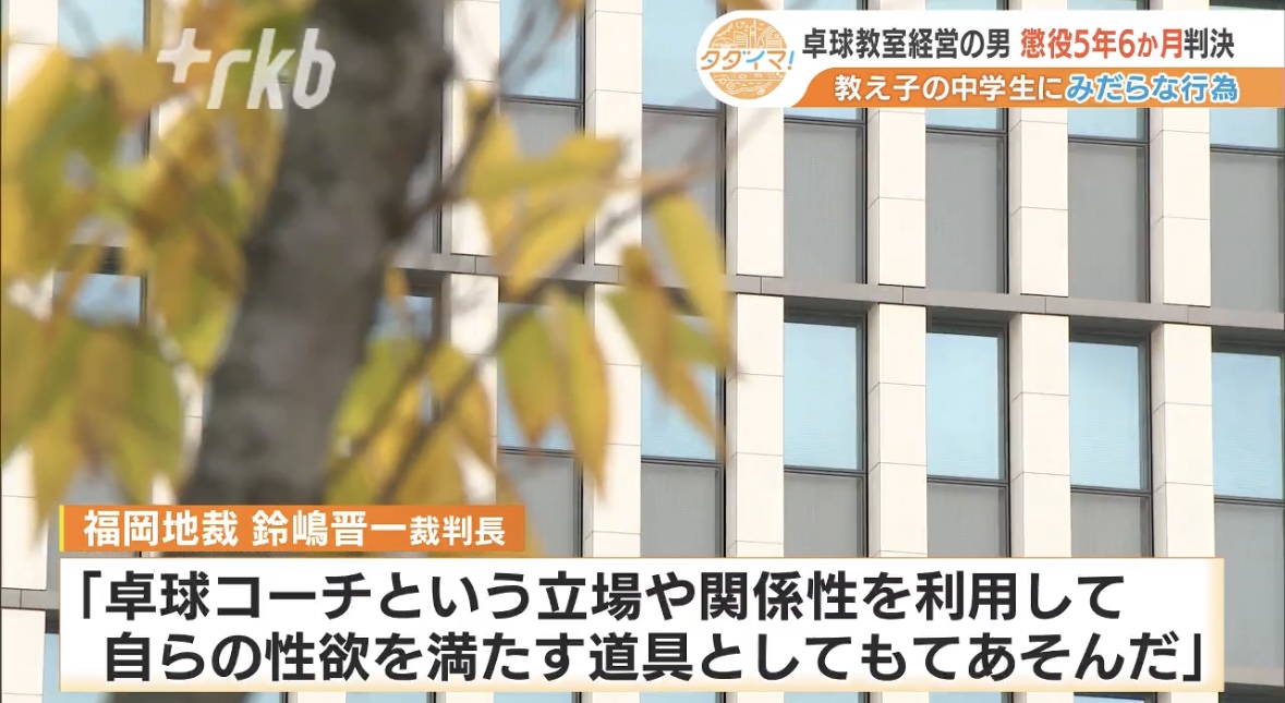 引用元: ・卓球教室のコーチ(73)に懲役5年6か月 教え子の女子中学生2人に性的暴行やわいせつ行為