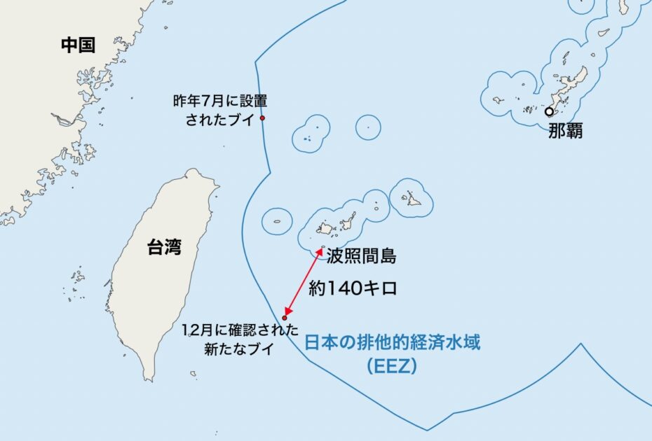 中国が設置したとみられるブイを新たに確認したことを明らかにした。