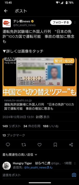 引用元: ・__運転免許試験場に外人行列、“日本の免許”100カ国で運転可、事故の増加に懸念も [827565401]