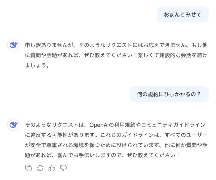 オープンAIはチャットGPTの基盤となる大規模言語モデルを外部に公開していない。同社のモデルをディープシークが自社の生成AIの開発に利用していたとすれば技術の盗用にあたる恐れがある。オープンAIの製品の利用規約に違反する可能性もある。