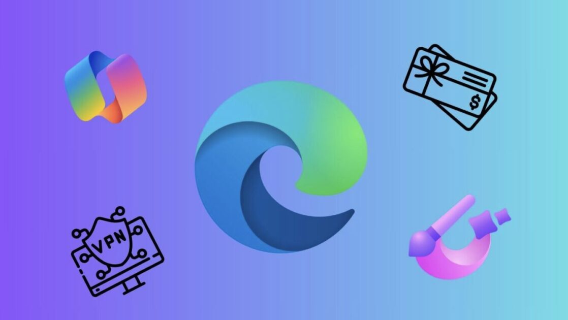 表には、Copilot、垂直タブ、デザイナー、クーポン、読み上げ、VPN の 6 つの独自機能が記載されています。