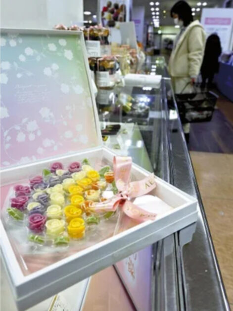 同店によると、近年はバレンタインに自身への「ご褒美」としてチョコを買い求める客が多いことから、見栄えを重視した品ぞろえに力を入れているという。