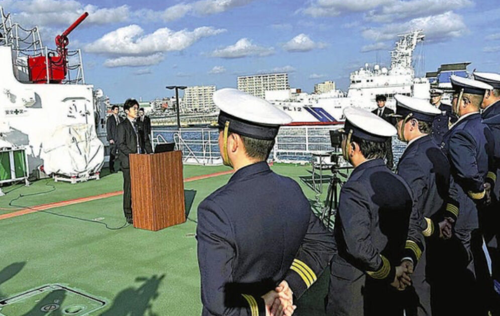 激励には同庁の瀬口良夫長官も同行した。中野氏は大型巡視船「やえやま」(約3500トン)で放水銃や40ミリ機関砲の説明を受けた後、甲板に並んだ約100人の乗組員を前に「極度の緊張下で対応している皆さんに敬意を表す。引き続き、海上保安能力の強化を進めていく」と訓示した。
