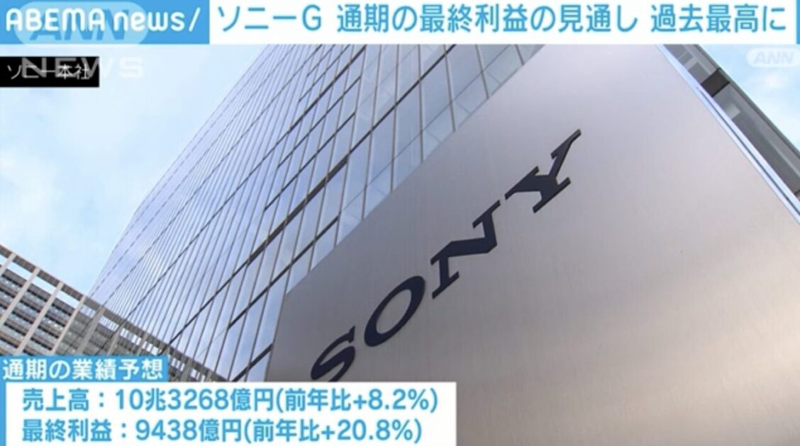 ソニーグループは2025年3月期の業績予想を1000億円上方修正し、1兆800億円としました。最終的な利益は過去最高を更新する見通しです。 ソニーグループの去年12月までの9カ月間の決算は、売上高が10兆3268億円【前年比+8.2%】、最終的な利益が9438億円【前年比+20.8%】と大幅な増収増益でした。