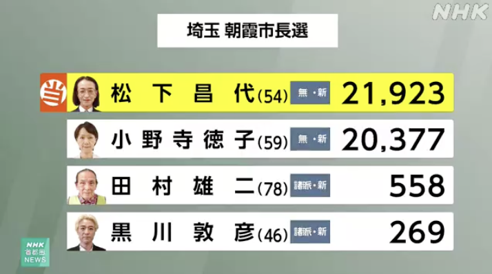 埼玉 朝霞市長選挙 新人の松下昌代氏が初当選|NHK 埼玉県のニュース
