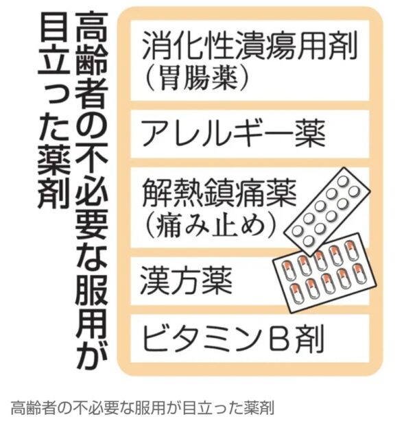 調査は2020年4月~23年9月に薬局のシステムに登録された65歳以上の高齢者約145万人が対象。6種類以上の薬を飲んでいる人は19.6%で、90歳以上で34.7%に上った。