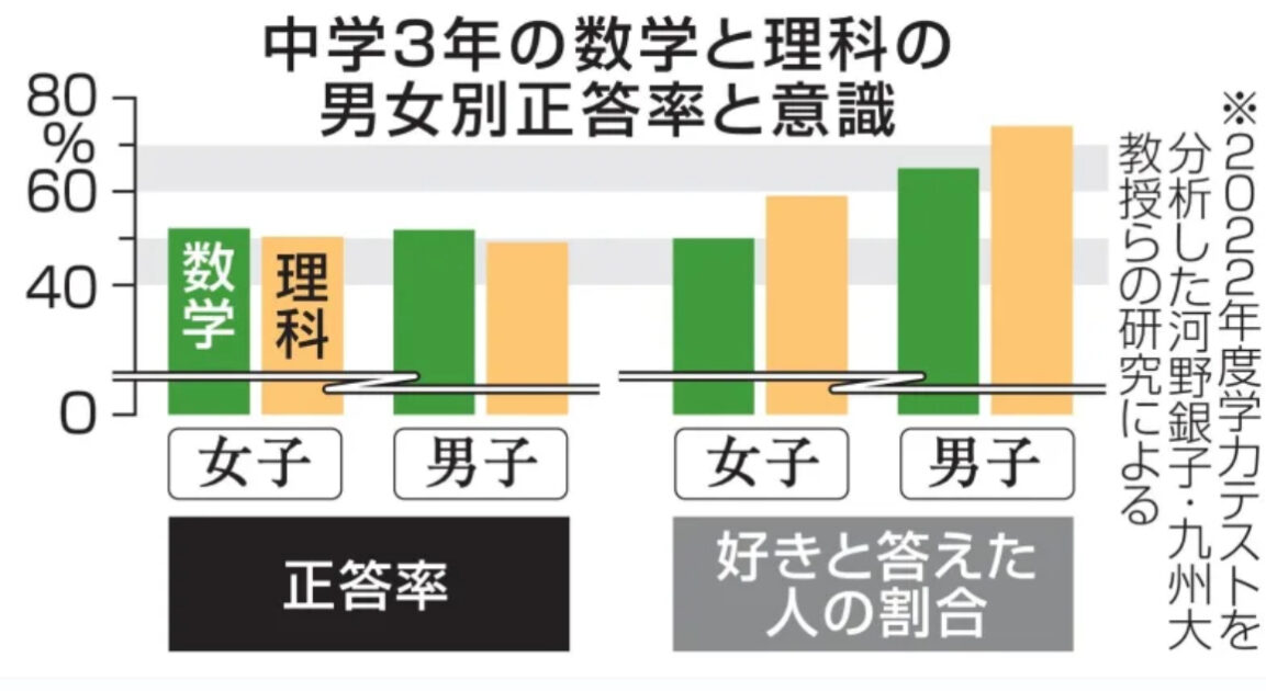 文部科学省が2022年度に実施した全国学力・学習状況調査(全国学力テスト)で、中学3年の数学、理科の全国平均正答率は女子が男子をわずかに上回り、性別による学力差はほとんどみられなかったことが25日、九州大の河野銀子教授らの研究で分かった。一方、教科への関心や興味は女子の方が低かった。