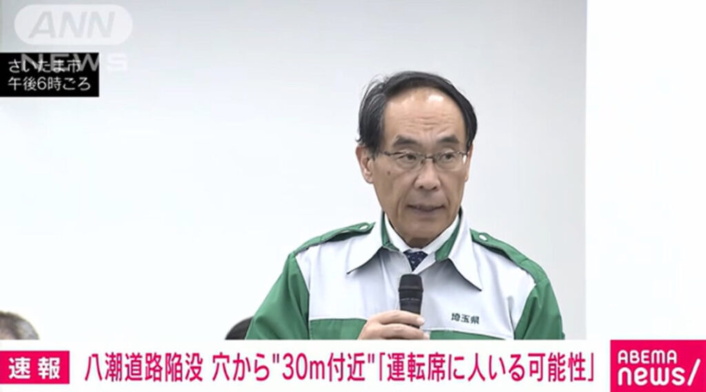 1: Ailuropoda melanoleuca ★ 2025/02/11(火) 19:06:43.31 ID:Nw5izkzU9 2025/2/11 18:53 埼玉県八潮市の県道交差点で道路が陥没してトラックが転落した事故で、埼玉県の大野元裕知事は11日、トラックの運転席部分は陥没現場から約30メートル下流の下水... -