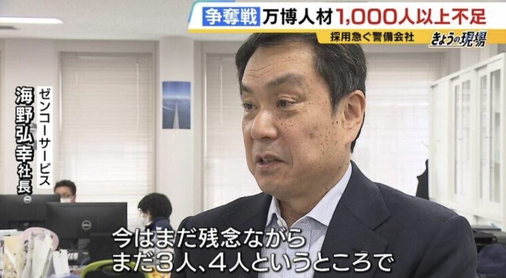 1: 七波羅探題 ★ 2025/02/10(月) 08:15:59.08 ID:reqUzsax9 「え?もう採用ですか?」求職者も驚きの"即採用" 万博開幕目前も警備・飲食業界で1000人以上の人手不足...時給UPなどあの手この手で奮闘する企業の採用活動 https://www.mbs.jp/news/featu... -