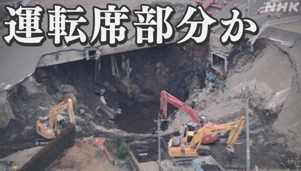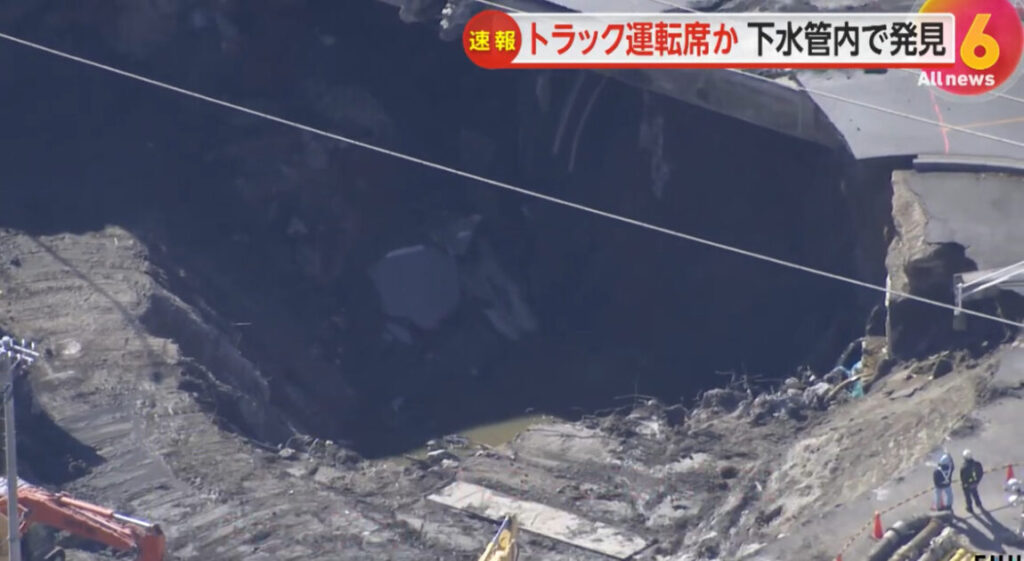 道路陥没事故、トラック運転席を下水道管内で発見か ドローンで確認 運転手の姿は確認できず