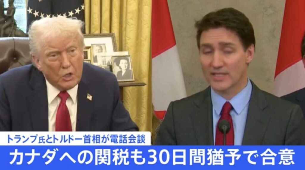 関税の発動を30日間遅らせることで合意 カナダ・トルドー首相、米トランプ大統領と電話会談