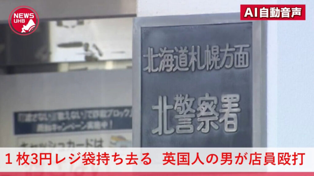 【北海道】セルフレジの横に置いてあった『1枚3円の"有料"レジ袋』を勝手に持ち去る…イギリス人観光客の48歳の男―追いかけてきたコンビニ店員の顔を殴り逮捕「殴ってない。突き飛ばしたときに手が当たったかも」