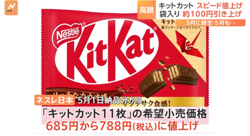 【値上げ】キットカット 内容量が13枚→11枚になるうえに価格を685円→788円に引き上げ