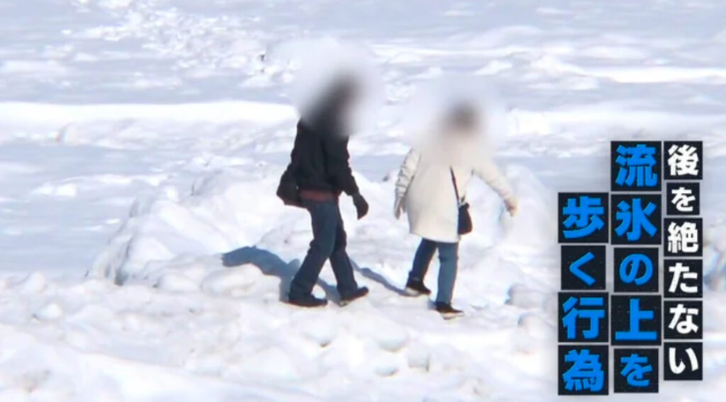 “流氷の上を歩く”観光客が続出 専門家が警鐘「例年より薄い氷多い」転落すると短時間で死
