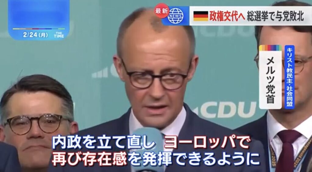 1: もん様(みかか) [ニダ] 2025/02/24(月) 04:49:48.47 ID:OOkhBohL0● BE:421685208-2BP(4000) sssp://img.5ch.net/ico/syobo2.gif 【速報】ドイツ総選挙、最大野党の保守「キリスト教民主・社会同盟」メルツ党首が勝利宣言ドイツでは23日に総選挙が行われ... -
