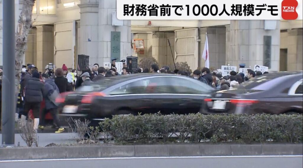 1: おっさん友の会 ★ 2025/02/23(日) 20:12:37.72 ID:KXO2XXkt9 21日夕方、東京・霞が関の財務省前で「財務省解体」など訴えるデモがありました。デモはSNSなどで呼びかけられこれまでにも複数回行われていました。警視庁によりますと参加者は1000人規模と... -