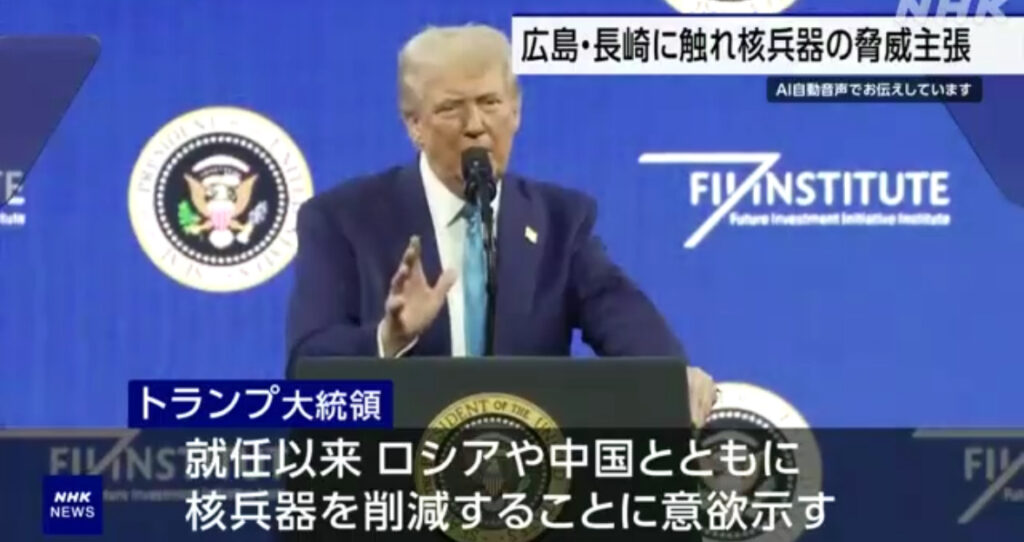 トランプ大統領「核兵器は世界の脅威 広島や長崎を思い浮かべて 世界は崩壊してしまう」