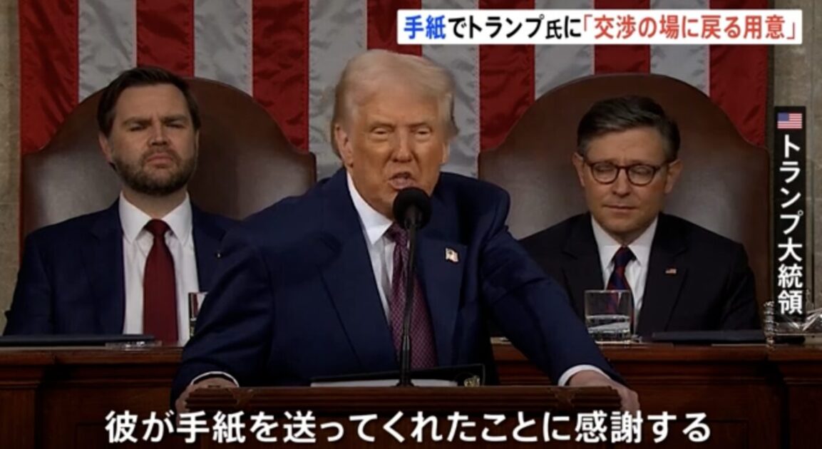 トランプ大統領は、4日行った施政方針演説の中で、ゼレンスキー大統領から手紙を受け取ったことを明らかにしました。