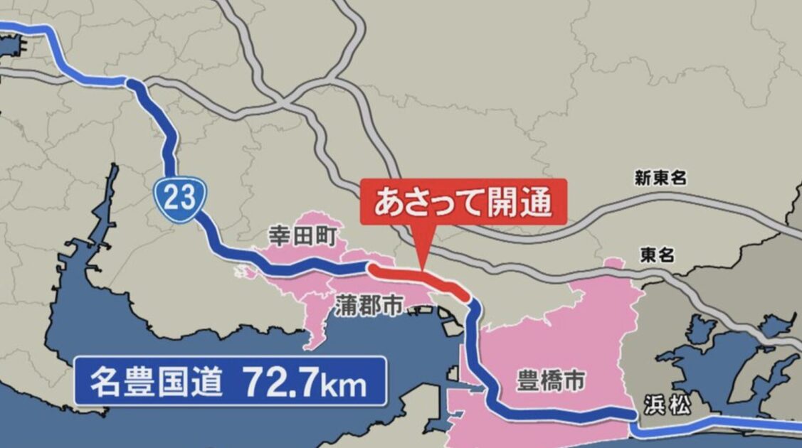名古屋と愛知県豊橋市を結ぶ国道23号「名豊道路」が、2025年3月8日に全線開通します。半世紀越しの夢の実現に、地元では観光客の増加などに期待が高まっています。■名古屋ー豊橋の所要時間が短縮「1時間20分」→「1時間」