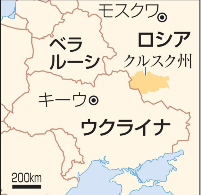 ウクライナ軍は昨年8月にクルスク州への越境攻撃を開始。約2週間で約1300平方キロを制圧したが、ロシア側の奪還が続き、今年1月下旬時点での占領面積は約400平方キロとされる。