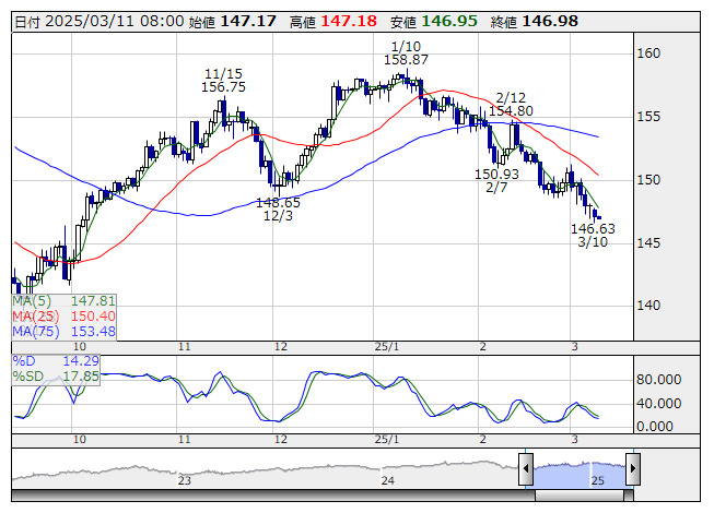 【通貨】外為:1ドル146円96銭前後と大幅なドル安・円高で推移