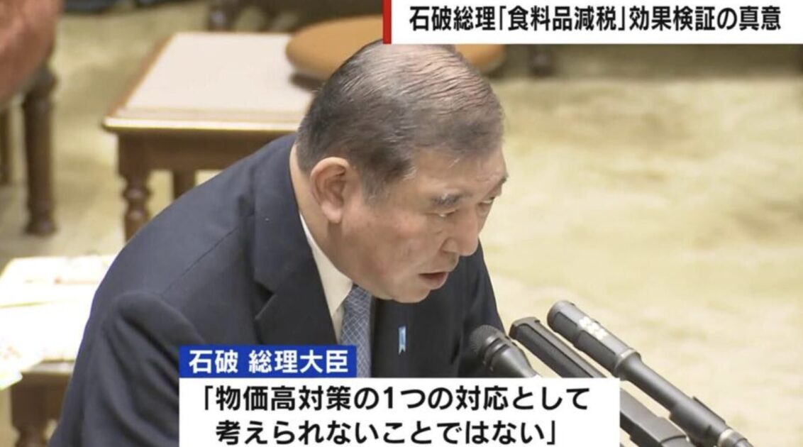 国会で立憲民主党・川田龍平参議院議員は、オーストラリアや韓国など食料品については非課税とする国を挙げ、日本でも食料品の消費税率を引き下げるよう迫った。石破総理は「物価高対策の1つの対応として考えられないことではない」と応じた。その上で、税率や実施する期間・対象の品目などを「きちんと検討する」と述べ、効果についても検証を行うとしていた。