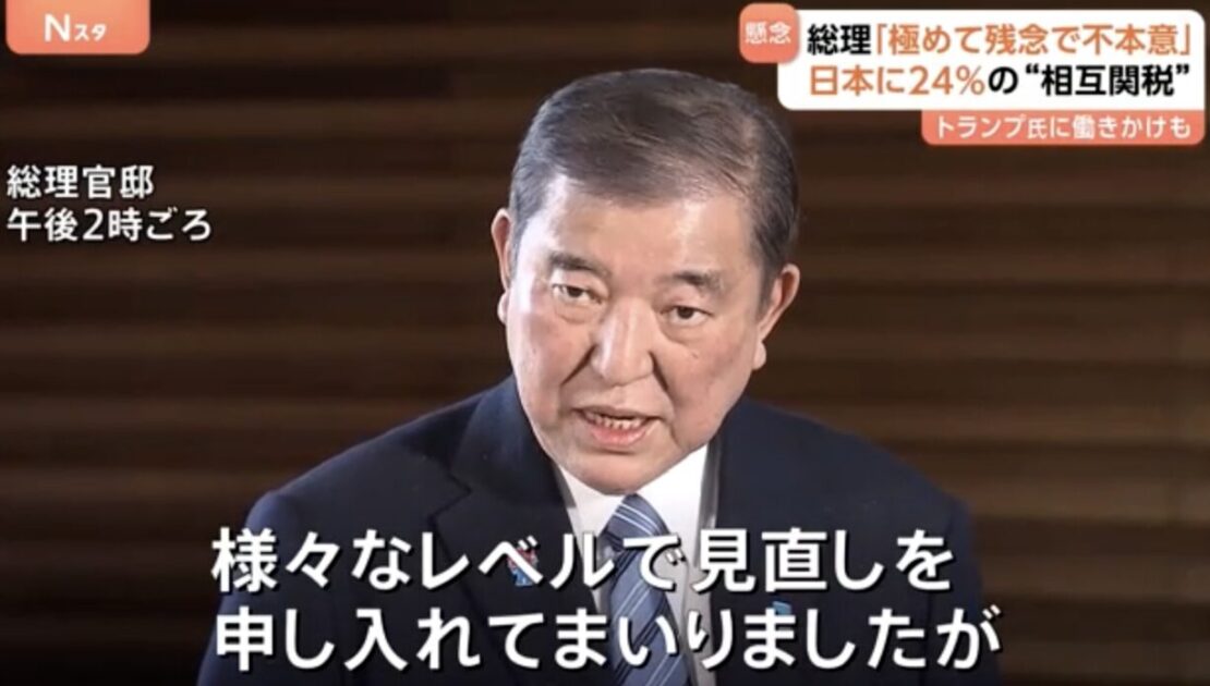 アメリカのトランプ大統領は貿易相手国と同じ水準の関税を課す「相互関税」の導入を正式に発表し、日本には24%の関税を課すと表明しました。石破総理の反応です。石破総理