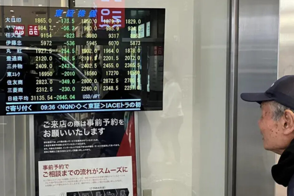 東京株式市場で日経平均株価が大幅続落した7日午前。神戸・三宮の証券会社前では通行人らが次々と立ち止まり、不安そうに株価ボードを見つめていた。「3千万円が飛んだ」。そんなことを話す個人投資家もいた。 神戸三宮センター街にある野村証券神戸支店。店頭に掲示している株価ボードを見つめていた個人投資家の高齢男性は「3月末から3千万円の損が出た」とつぶやいた。株式に投資して50年といい、「(2008年の)リーマン・ショックの時も同じぐらいの損が出た。株価は山あり谷あり。我慢するしかない」