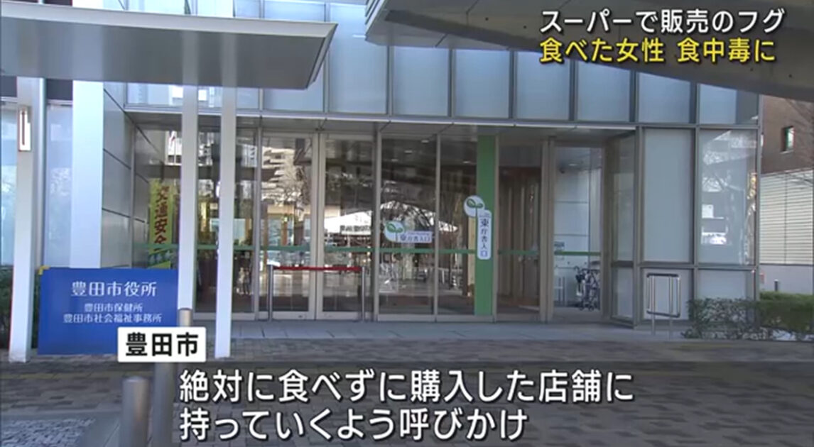 愛知県豊田市のスーパーで購入したフグを食べた40代の女性が食中毒になりました。 豊田市によりますと女性(40代)は豊田市浄水町のスーパー「えぷろん生鮮館浄水店」でフグを購入し5日自宅で調理をして食べたところ、脱力感や手足のしびれなどを訴え救急搬送されました。