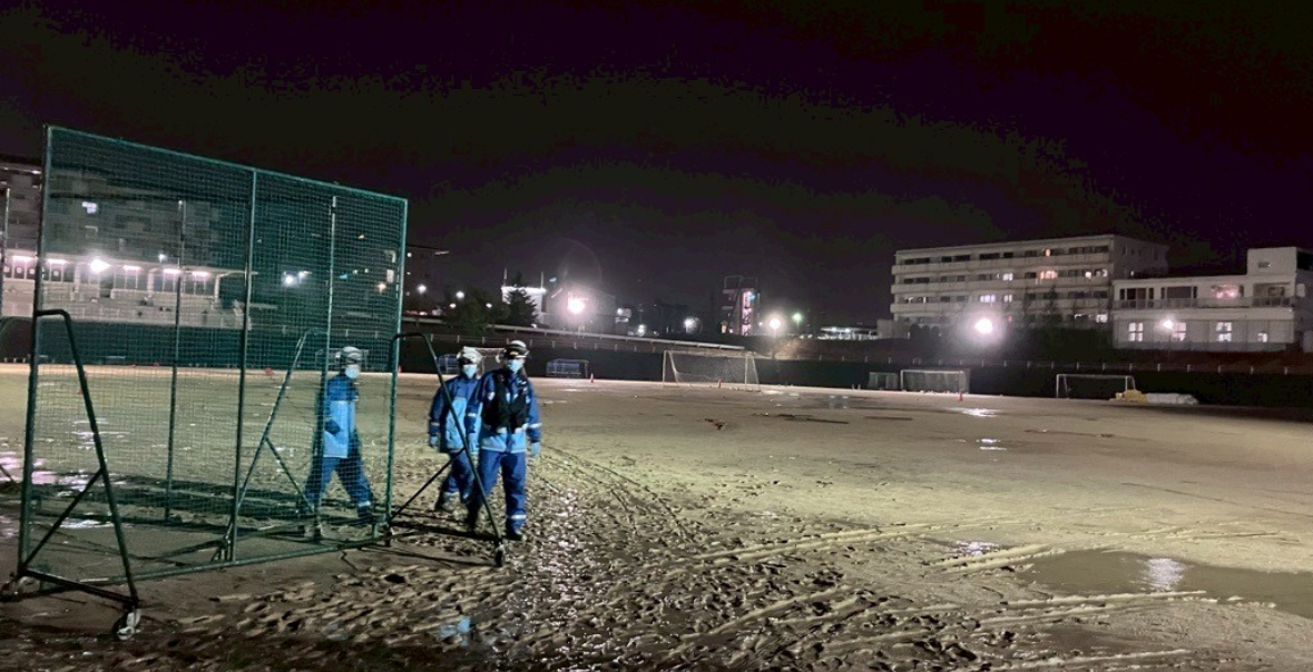 警察によりますと、グラウンドでは当時、帝塚山中学・高校のサッカー部の約20人が練習中だったということで、当時の状況を詳しく調べています。