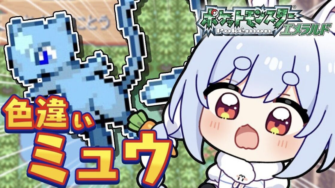 兎田は3月29日に実施したYouTube生配信で、『ポケットモンスター エメラルド』の色違いミュウを探すという企画を実施しました。ミュウを手に入れるためには、20年前に開催されたイベントの来場者に配布された「ふるびたかいず」という限定アイテムが必要であるため、兎田は中古で複数のカセットを購入。1本ずつ内容を確認していき、この日の配信で40本目にしてミュウと出会うことに成功していました。