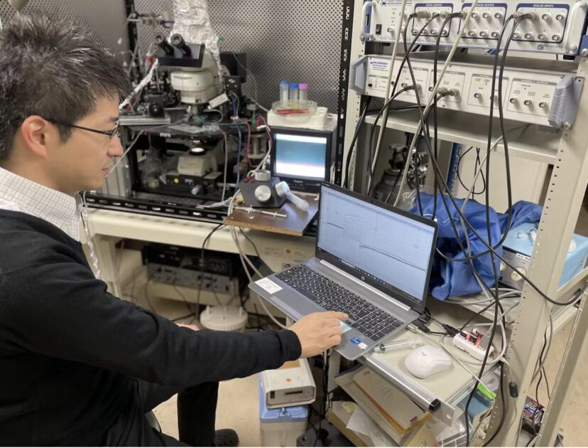 生きたマウスで脳の一部の活動を測った=大阪大学の河合喬文助教提供