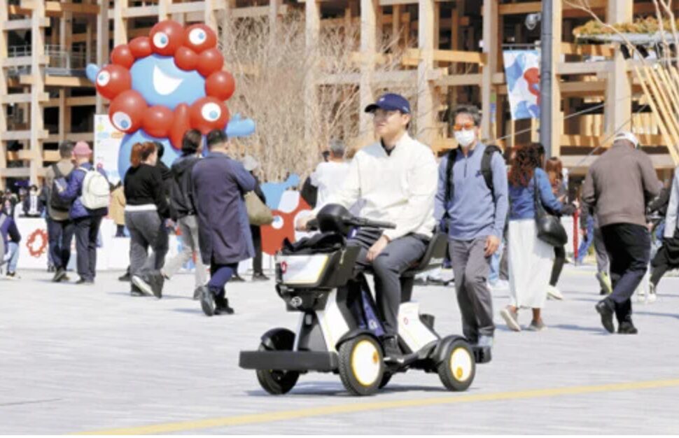 万博協会は、移動手段として、外周を巡るEVバスを有料で運行。電動カートは1人乗りで、東西のゲートに約60台ずつ配置され、高齢者らに優先して無料で貸し出している。