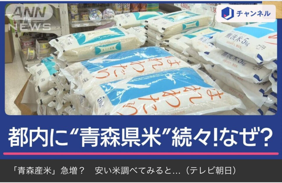 引用元: ・【コメ高騰】都内のスーパーに「青森県産のコメ」が急増 価格も割安 何故なのか? [シャチ★]