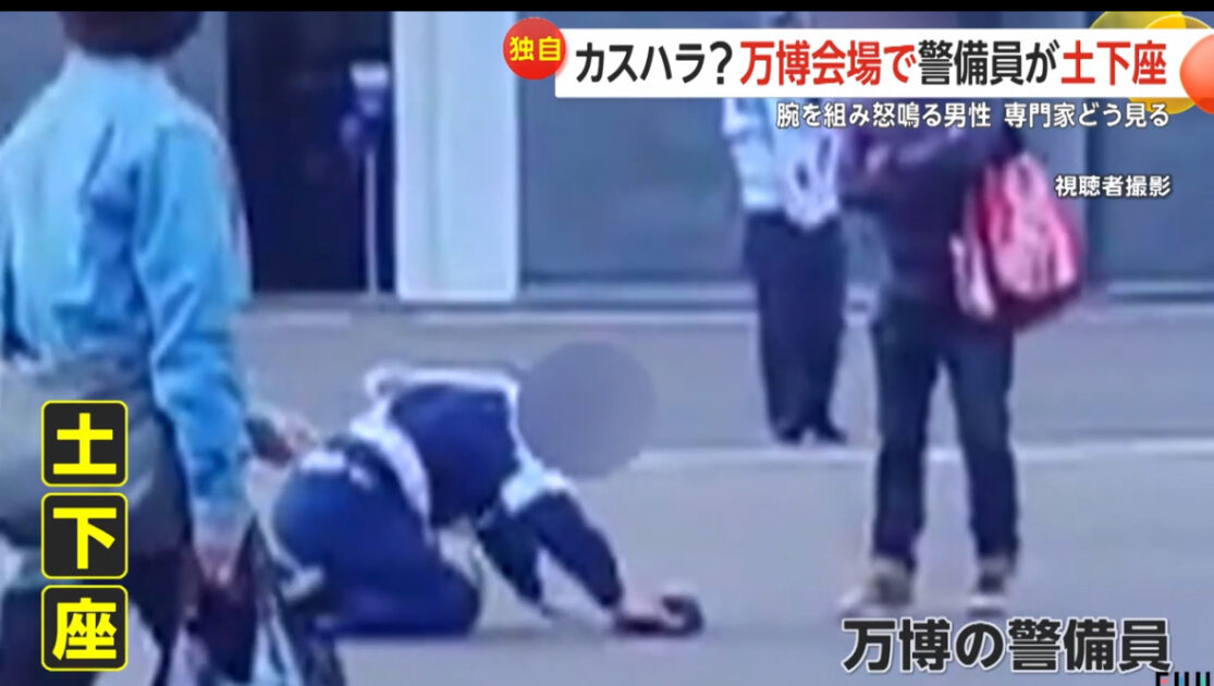 その前で土下座をするのは、万博の警備員とみられます。現場は、万博会場の西ゲート付近。