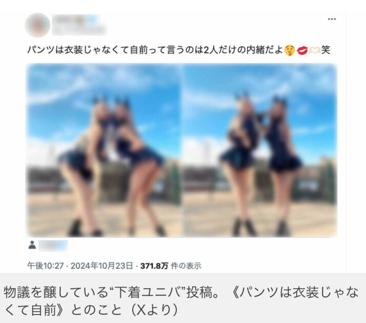 「2022年には、ある女性インスタグラマーがハロウィン期間のユニバーサル・スタジオ・ジャパンで“下着姿に近い衣装”を着用・撮影したグループ写真を投稿し、ネット上で問題視された“下着ユニバ”騒動がありました。2024年にも、別の女性2人組が網タイツを履いてミニスカートからヒップが見えている写真を《パンツは衣装じゃなくて自前》と投稿して炎上しています。