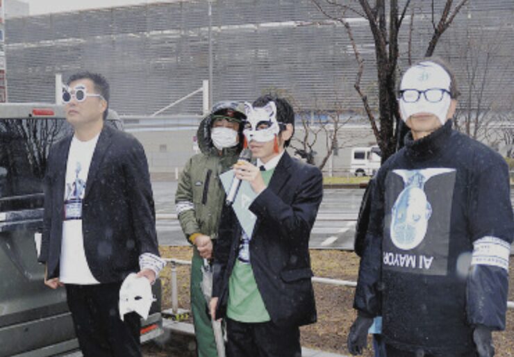 「AIメイヤー2号と申します。どこの誰かは言いません」。東京・小金井市議選が告示された3月16日、JR武蔵小金井駅前にAIメイヤー2号氏の第一声が響いた。名前は同氏を擁立した政治団体「AI党」党首・AIメイヤー氏に由来する。仮面で素顔を隠して演説する異様な光景に、道行く人はけげんな表情を浮かべていた。