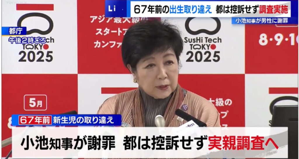 67年前の“新生児取り違え”小池知事が謝罪、東京都は控訴せず…実親調査へ