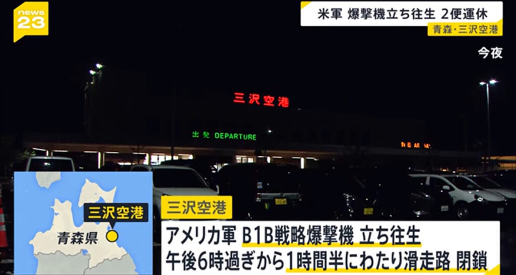 1: シャチ ★ 2025/04/30(水) 01:19:07.05 ID:hXsR3EMZ9 青森県の三沢空港でアメリカ軍のB1B戦略爆撃機が立往生し、午後6時すぎから1時間半にわたって滑走路が閉鎖されました。記者 「滑走路の閉鎖は解除されましたが、カウンターでは振替手続きの対応に追... -