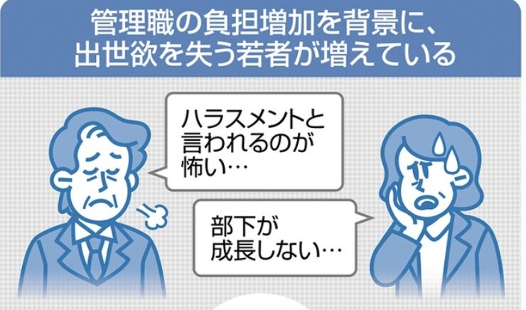 引用元: ・「管理職になりたくない」若者増加 責任と業務、割に合わず 1万人調査 [蚤の市★]