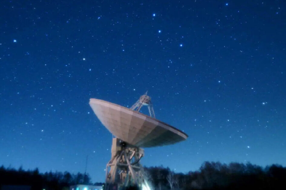 標高1350メートルの自然豊かな野辺山高原に、空に向かって大きく広がるアンテナがある。観測所のシンボルである世界最大級の電波望遠鏡「45m電波望遠鏡」。直径45メートルの大口径が特徴の望遠鏡は映画やポスターにも登場。物語の大きな鍵になる。