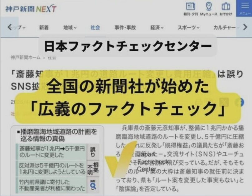 神戸新聞は2025年4月3日に「斎藤知事が1兆円の道路ルート変更し費用圧縮」は誤り SNS拡散情報、兵庫県『事実無根の陰謀論』」という記事を公開しました。斎藤元彦知事をめぐる「陰謀論」を検証し、事実無根だと判定する「ファクトチェック」形式の記事でした。